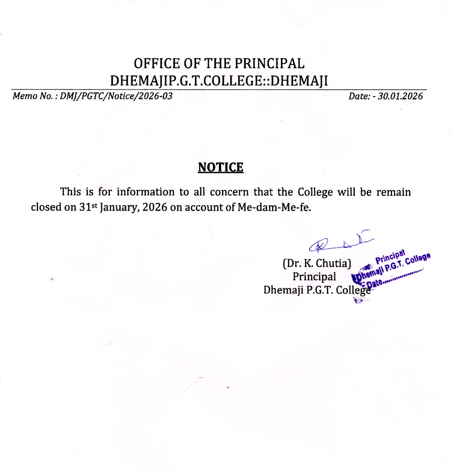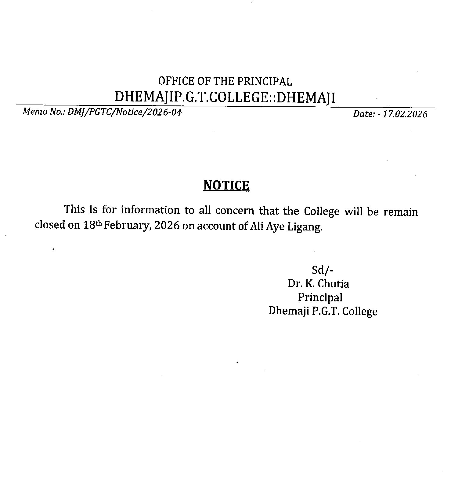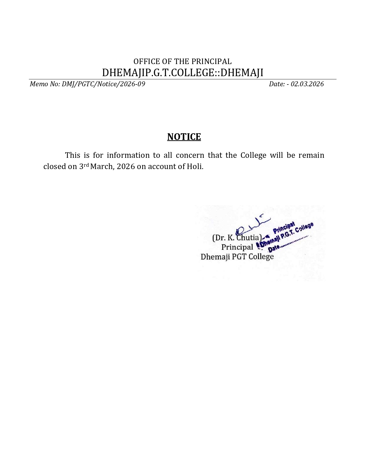 North-Eastern corner of Dhemaji Town, the college boasts of a serene and conducive natural environment, providing an ideal setting for academic pursuits.
