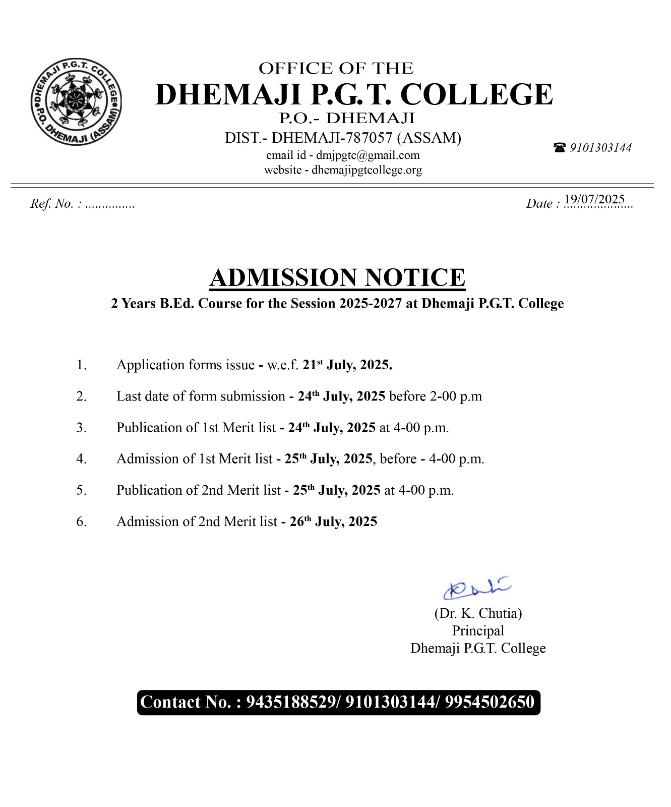 (d) The Practice Teaching Programme (Internship Programme):- The Students of the 4th semester must go to a School according to there are choice for teaching practice and other teaching learning activities for a period of 16 (Sixteen) weeks. The performance of Teacher Students is supervised by the Teachers of the College.